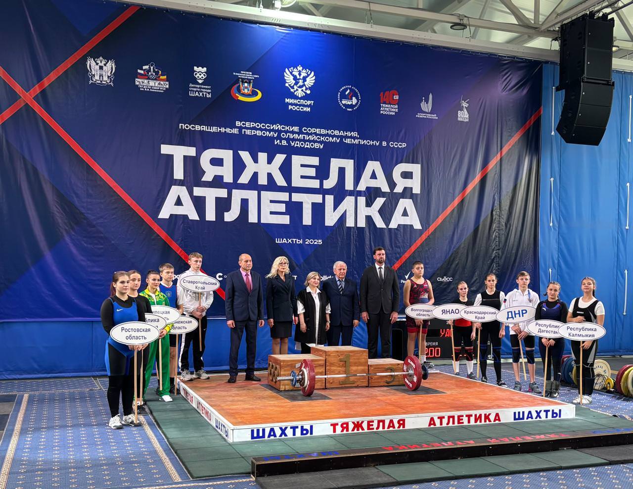 Состоялось торжественное открытие Всероссийских соревнований по тяжёлой атлетике, посвященных первому Олимпийскому Чемпиону в СССР Ивану Васильевичу Удодову. На мероприятии присутствовали почётные гости: начальник отдела спорта высших достижений Министерства спорта Ростовской области Алексеев Игорь Валерьевич, председатель городской Думы города Шахты Голодов Максим Александрович, заместитель главы Администрации города Шахты по социальному развитию Морозова Светлана Николаевна, директор ГБУ ДО РО "СШОР №15" Бессонов Геннадий Вениаминович.