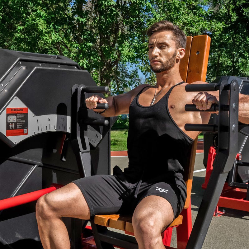 Уличный силовой тренажёр «Жим от груди» — это надёжное и эргономичное оборудование для развития мышц груди, плеч и трицепсов. Конструкция выполнена из прочного стального профиля, оснащена деревянным сиденьем с защитным покрытием и подвижной рамой отягощения, закрытой защитными кожухами. Такая конструкция обеспечивает безопасность, комфорт и долговечность даже при интенсивных тренировках на открытом воздухе. Тренажёр подходит как для начинающих, так и для опытных пользователей, стремящихся развить силу верхней части тела.
