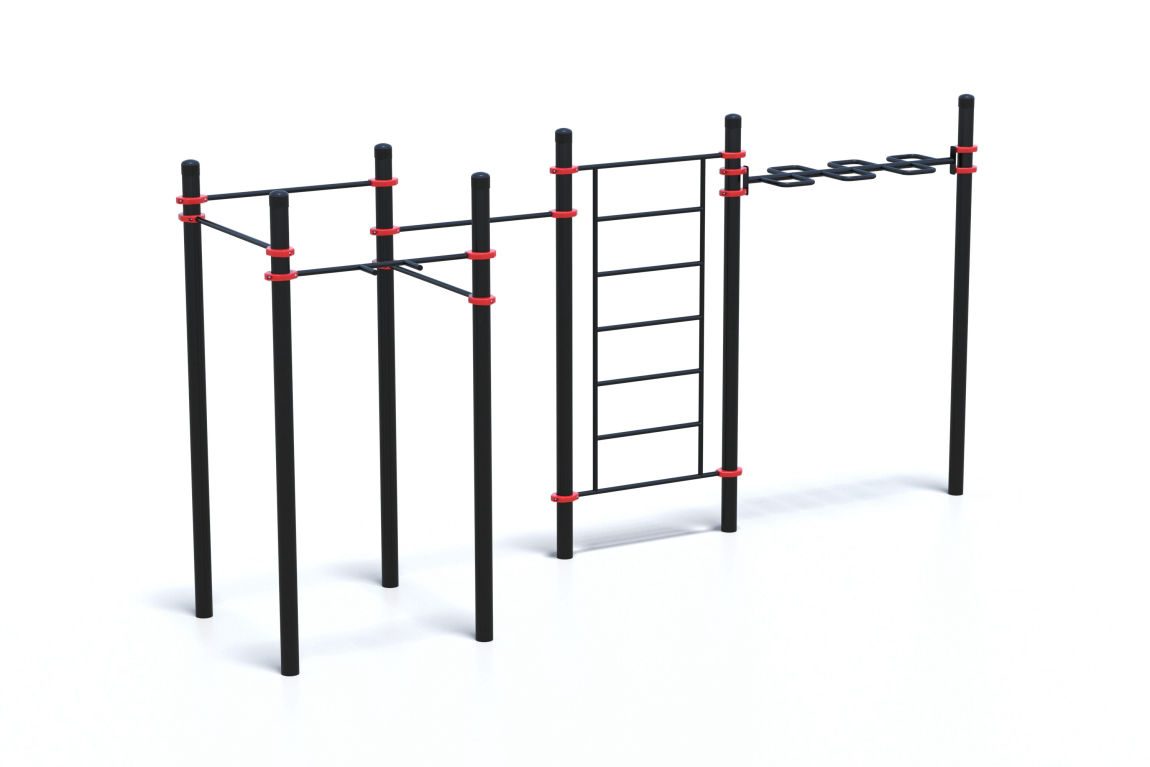 Этот многофункциональный уличный спортивный комплекс объединяет три ключевых элемента: рукоход («змеевик») для развития хватовой силы и координации, шведскую стенку — универсальный инструмент для растяжки, упражнений на пресс и подтягиваний, а также пять турников с классическим хватом разной высоты — для тренировок от начального до продвинутого уровня. Комплекс предназначен для регулярных занятий на свежем воздухе и подходит как детям старше 14 лет, так и взрослым любого возраста.